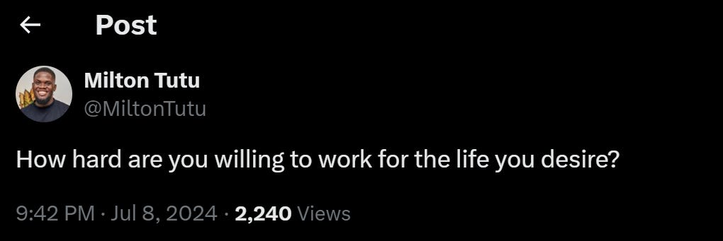 Then I saw this tweet from Milton Tutu, and thought so freaking hard about it: